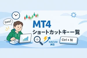 そこで役立つのが、MT4に標準で用意されているショートカットキー。よく使う操作をキーボードで呼び出せるようにしておくと、日常の作業スピードが一気に上がります。